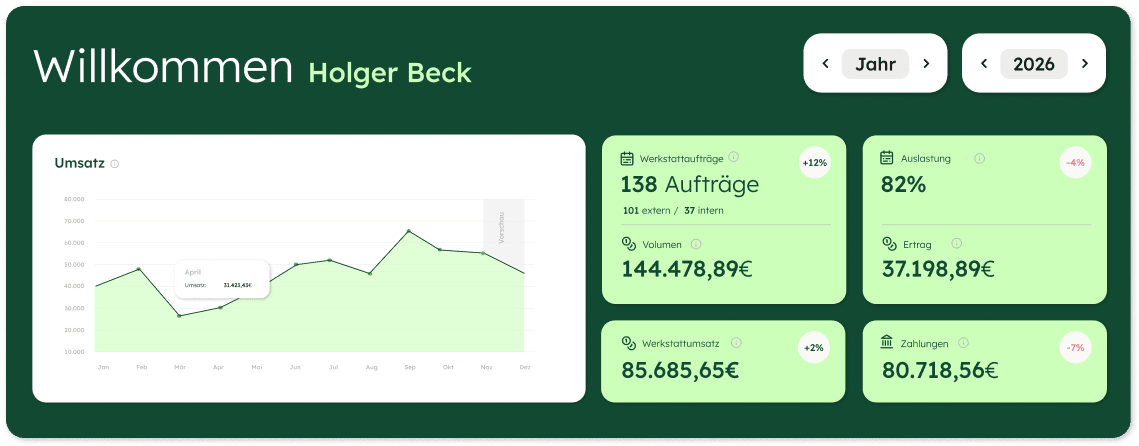Werkstattaufträge, Warenwirtschaft, Teilemanagement und Buchhaltung in einem System