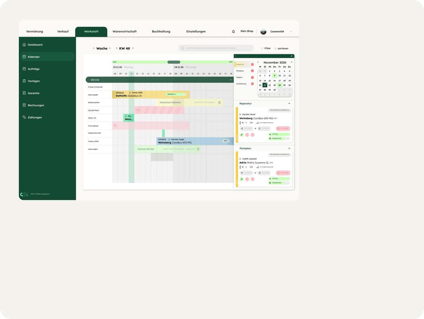 Wohnmobil-Verwaltung, Buchungsstrecke, Übergabeprotokolle, Warenwirtschaft und Buchhaltung in einem System